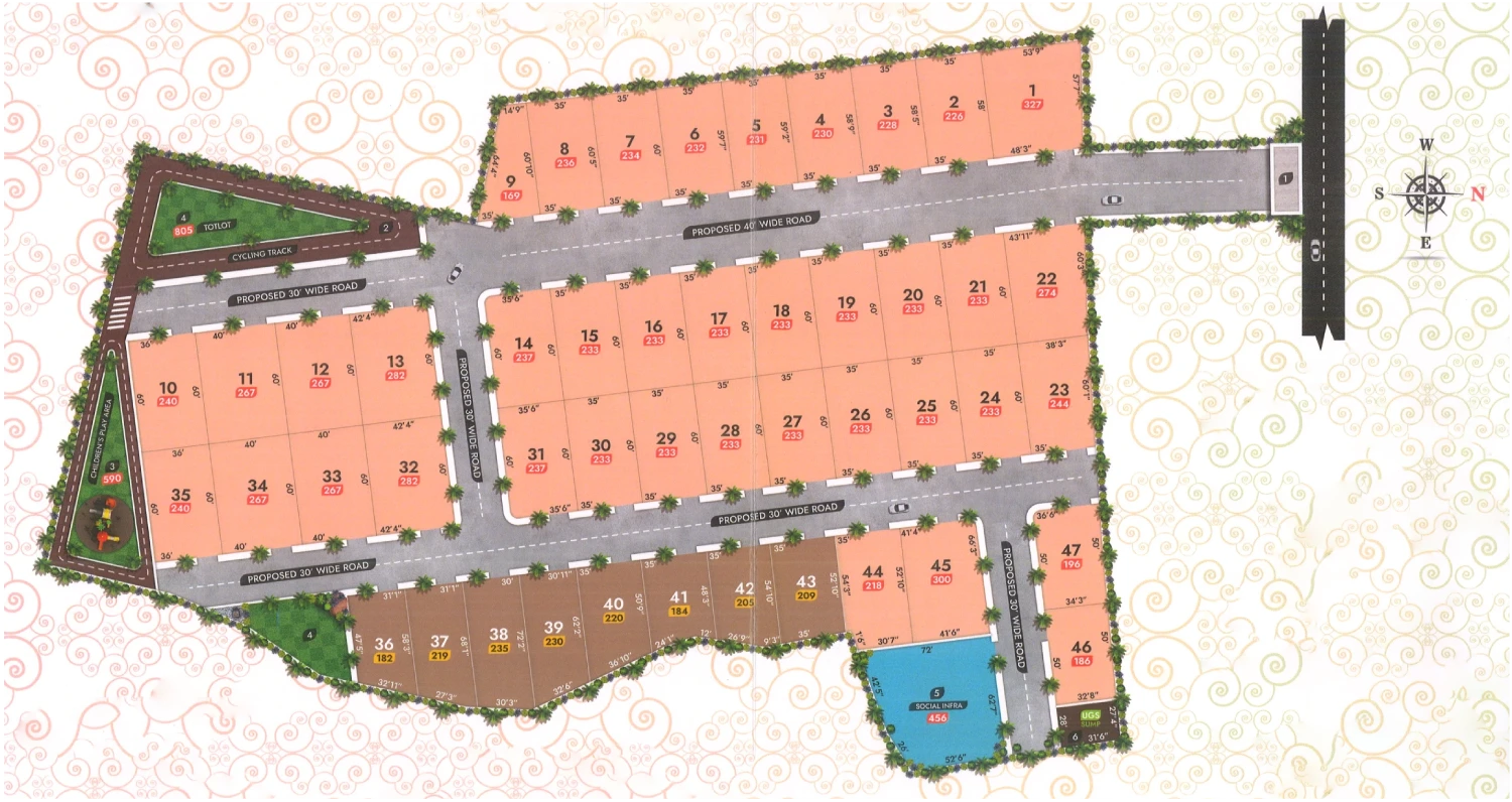 - Grand Entrance Arch with 40ft and 30 internal Roads